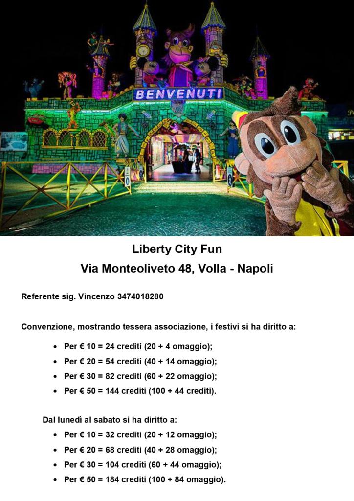 Il parco giochi Liberty City Fun si trova a Volla, vicino Napoli, ed è un’ampia struttura che dispone di piscine, bowling, sala feste, caffè, ristorante e supermercato e oltre 30 attrazioni per bambini. Il Liberty City Fun è un’azienda leader nel settore del divertimento per famiglie, attivo da oltre vent’anni, garantisce un’esperienza di divertimento che soddisfa le esigenze di genitori e bambini, assicurando alla clientela un ambiente sano, divertente e sicuro.
