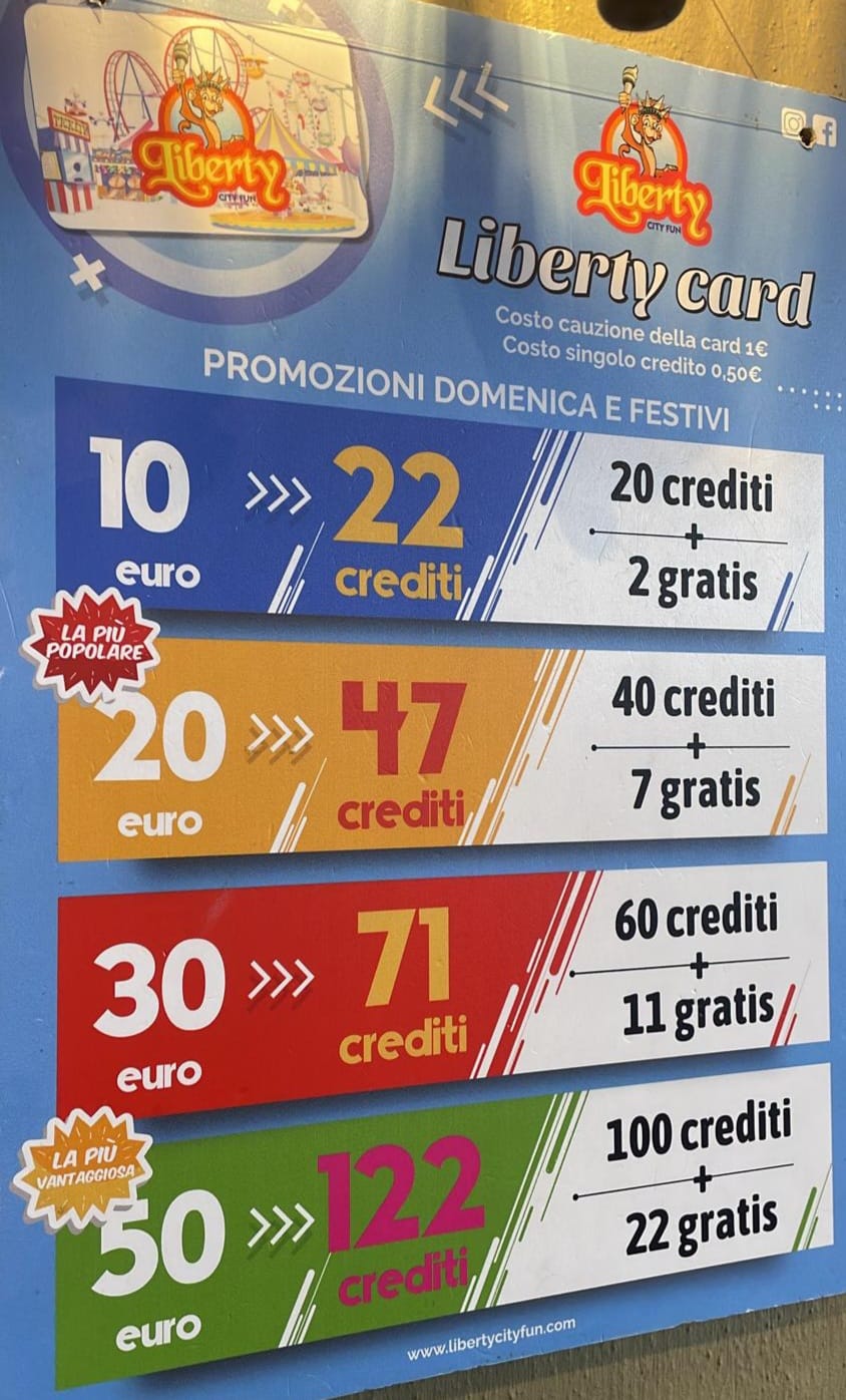 N.B. I crediti gratis indicati nella tabella valgono il "DOPPIO" per le famiglie de Il Mio Mondo Esiste